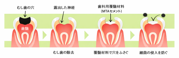 そのようなときの治療方法の一つとして、MTAセメントを使用することで、歯の神経を残せる可能性がある場合があります。